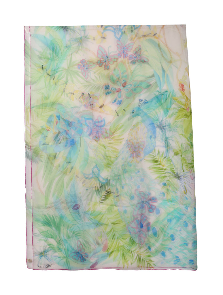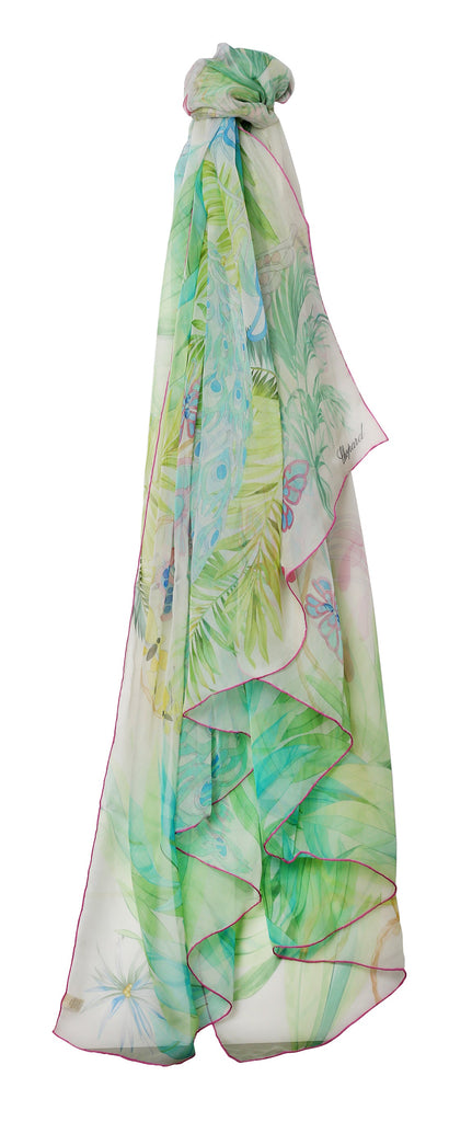 Chopard Animal World Off-White/Green Organic Silk Chiffon Womens Stole/Scarf 95005-0469