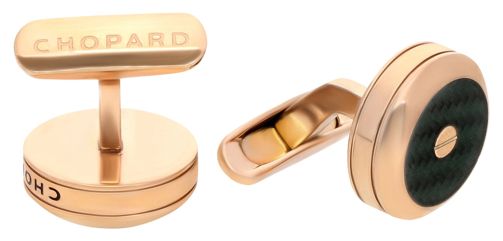 Chopard Classic Racing Rose Gold PVD Steel and Green Carbon Fiber Mens Cufflinks 95014-0072