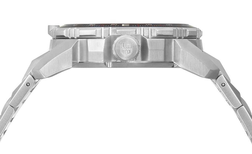 The Luminox Ice-Sar Arctic Stainless Steel Silver-Tone Dial Date Divers Quartz Mens Watch Model# XL.1207 / XL1207 has a silver-tone with Artic globe design dial that is encased in the brushed stainless steel case. This watch comes with a stainless steel bezel with a blue top ring bi-directional rotating stationary compass. It features red, blue, and luminescent hands and blue and luminous Arabic Numeral hour markers. Date display window at the 3 o'clock position. The watch is fitted on a brushed stainless steel bracelet with a buckle. The watch offers a water resistance capacity of up to 200 meters/660 feet.Like all of our watches, this Luminox Ice-Sar Arctic Stainless Steel Silver-Tone Dial Date Divers Quartz Mens Watch is brand new and comes in its original packaging.