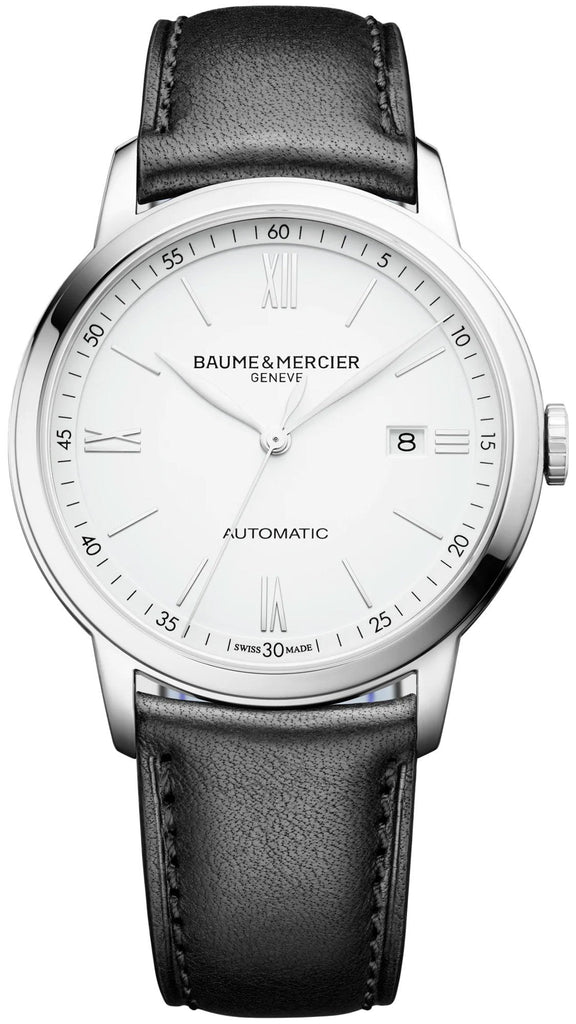 Baume & Mercier Classima Automatic White Dial Black Leather Strap Date Mens Watch MOA10332