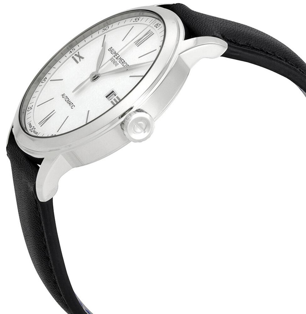 Baume and Mercier Classima Automatic White Dial Black Leather Strap Date Mens Watch MOA10332