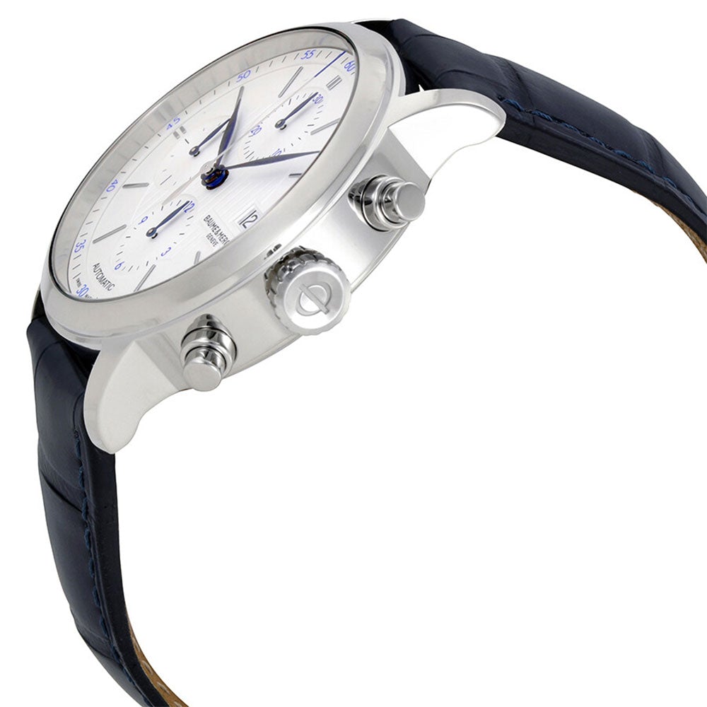Baume & Mercier Classima Automatic Chronograph Stainless Steel Blue Leather Strap Silver Dial Date Mens Watch M0A10330