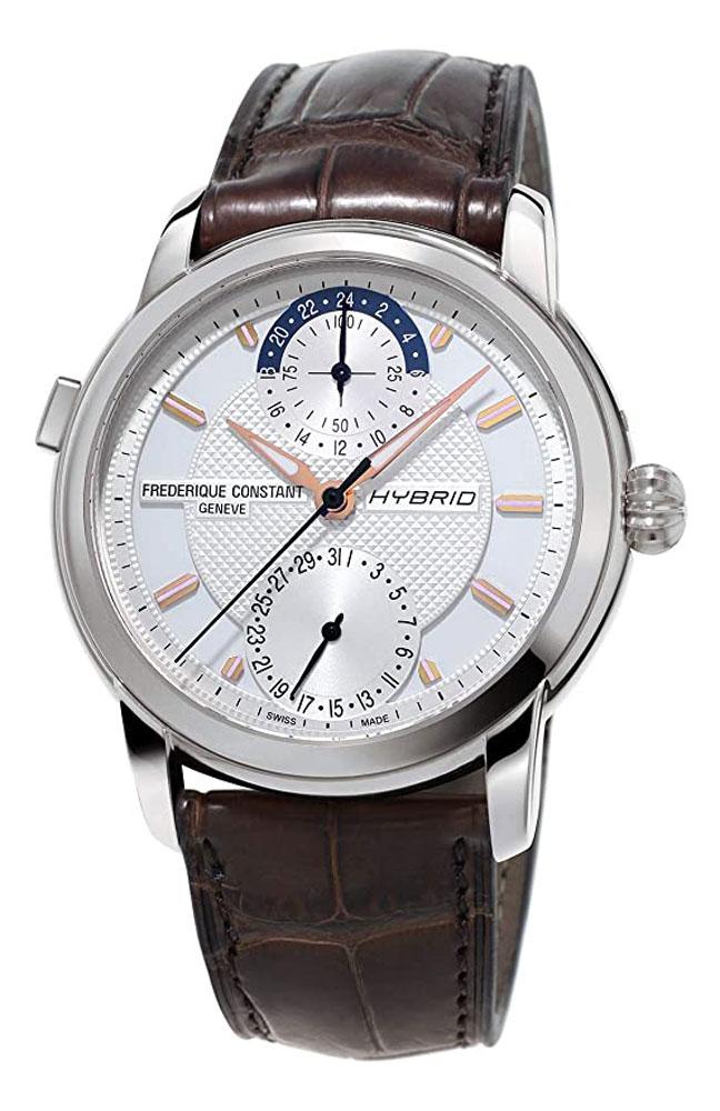 Frederique Constant Classic Hybrid Manufacture Automatic Mens Horological Smartwatch Worldtimer Stainless Steel Brown Leather FC-750V4H6