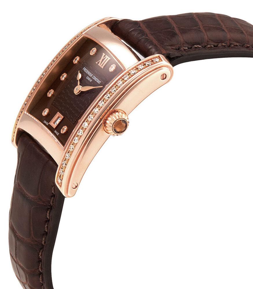 Frederique Constant Delight Carree Rose Gold Plated and Diamond Brown Leather Womens Watch Date FC-220CHD2ECD4