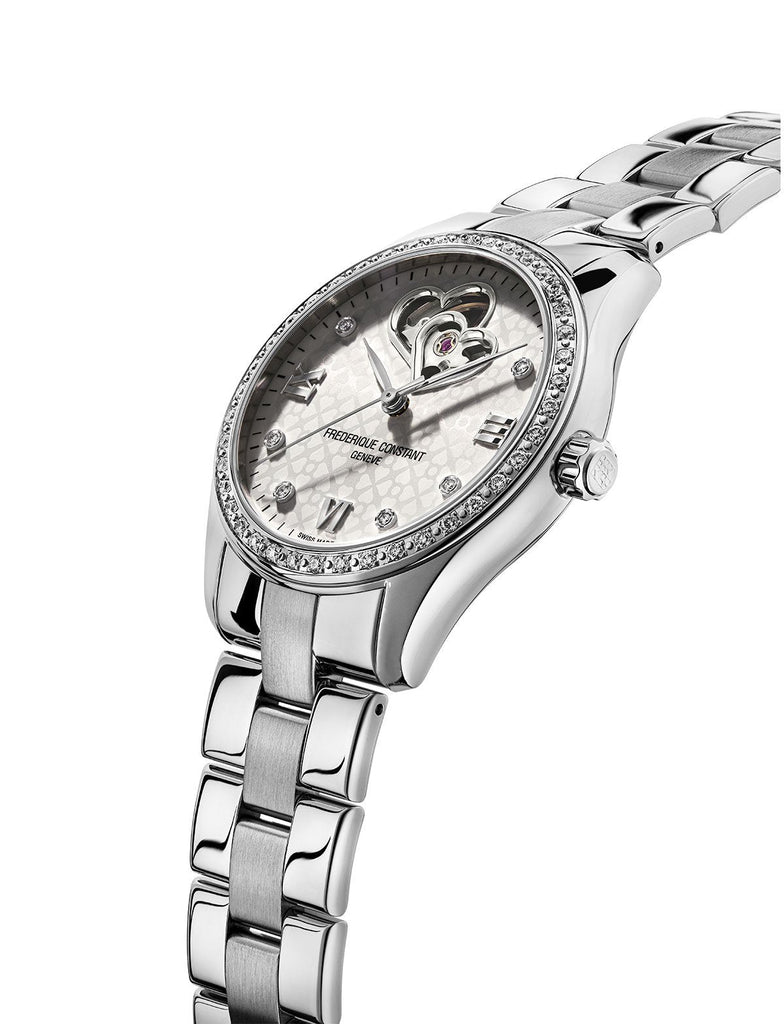 Frederique Constant Double Heart Beat Automatic Stainless Steel & Diamond Silver Sunray Heart Dial Womens Watch FC-310WDHB3BD6B