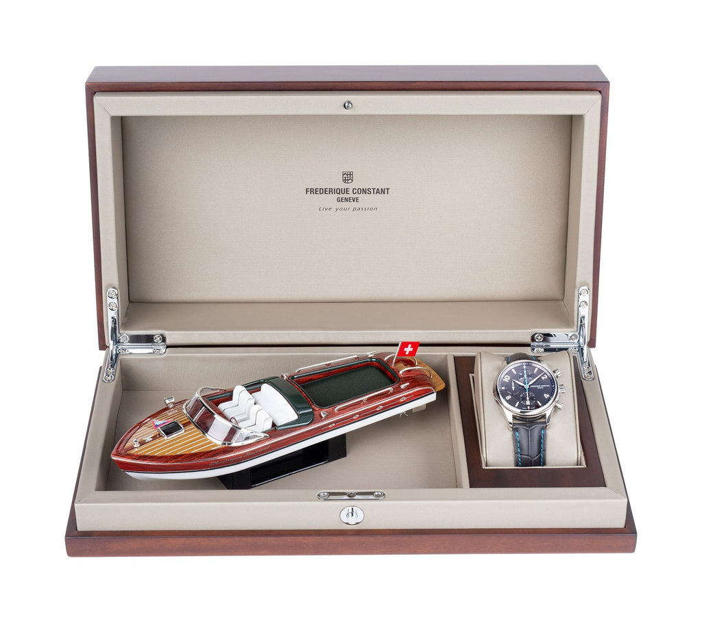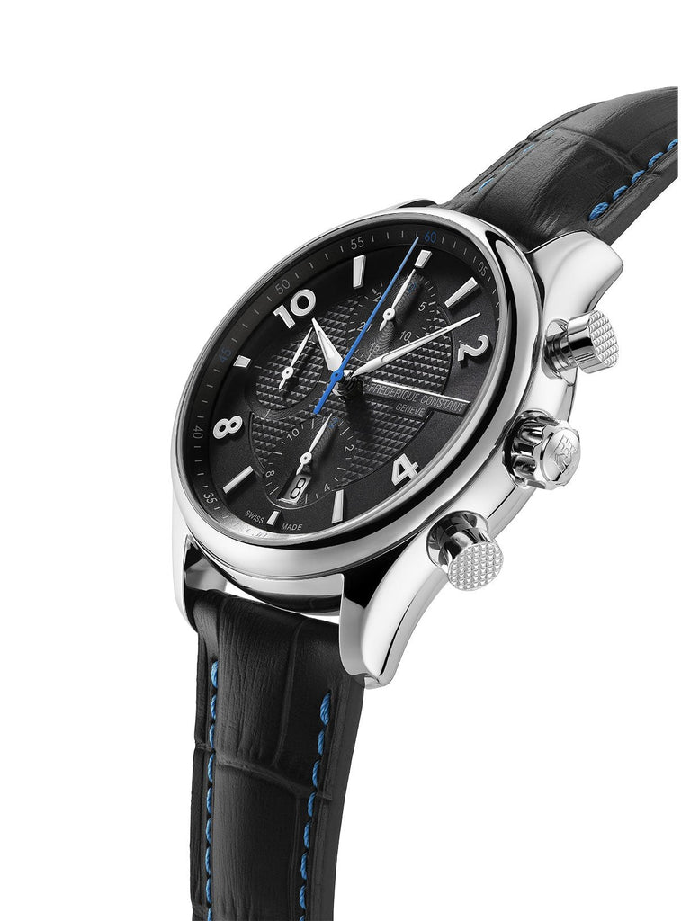 LIMITED EDITION - Frederique Constant Runabout RHS Chronograph Automatic stainless steel leather strap gray dial Mens watch Model# FC-392RMG5B6 / FC392RMG5B6 features a stainless steel case that holds the gray textured dial. The dial has silver tone & luminous hand indicators, silver tone & luminous Arabic Numeral & index hour markers. Chronograph functions: 12 hours, 30 minutes, 60 seconds. Date displayed at the 6 o'clock position. Scratch resistant sapphire crystal and a transparent case back. Gray Genuine Crococalf leather strap has a push button deployment clasp. This watch runs on a Swiss automatic chronograph movement based upon ETA 7750, Caliber FC-392, containing 25 Jewels, bitting at 28800 vph, 42 hour power reserve, and is water-resistant up to 50 meters/165 feet.Like all of our watches, this Frederique Constant Runabout RHS Chronograph stainless steel leather strap gray dial Mens watch is brand new and comes in its original packaging.
