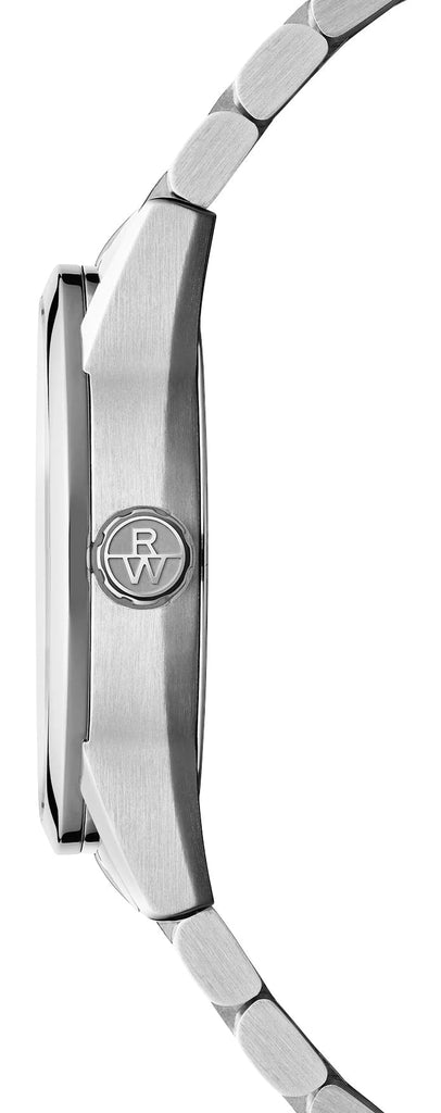 Created in honor of the free-spirited man, combining classic and modest to create a harmonious and unique design. This gents' Freelancer presents a boldly distinctive design, echoing the construction found in the most beautiful tourbillon regulators. It features a 42.5 mm stainless steel case with a fixed bezel and screw-down crown. It holds a mesmerizing sunray blue dial under a scratch-resistant sapphire crystal. It has silver-tone and luminescent barrel hands with applied indices as hour markers along a concentric circular edge. Situated at the 6 o'clock position is the open heart aperture, revealing the balance-and-spring assembly and held by a single skeletonized bridge. It is fitted with a matching stainless steel bracelet and secured by a folding clasp with a double push-security system. This watch has an exhibition caseback showcasing the caliber RW1212, a Swiss automatic movement beating at 28,800 vibrations per hour, generating up to 41 hours of power reserve and is water-resistant up to 100 meters/330 feet.