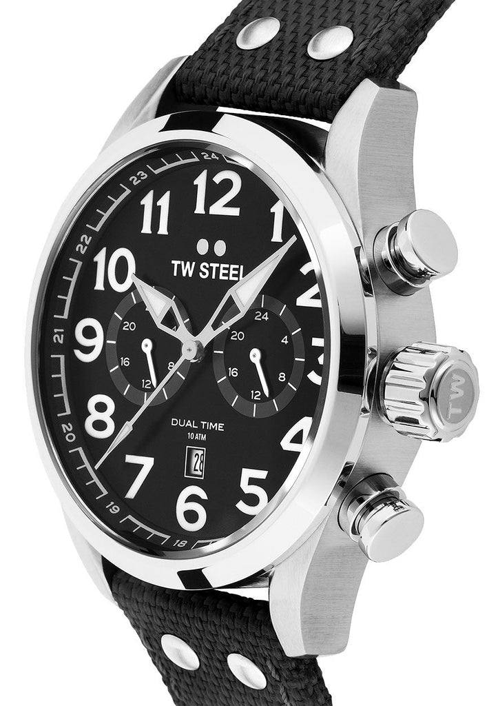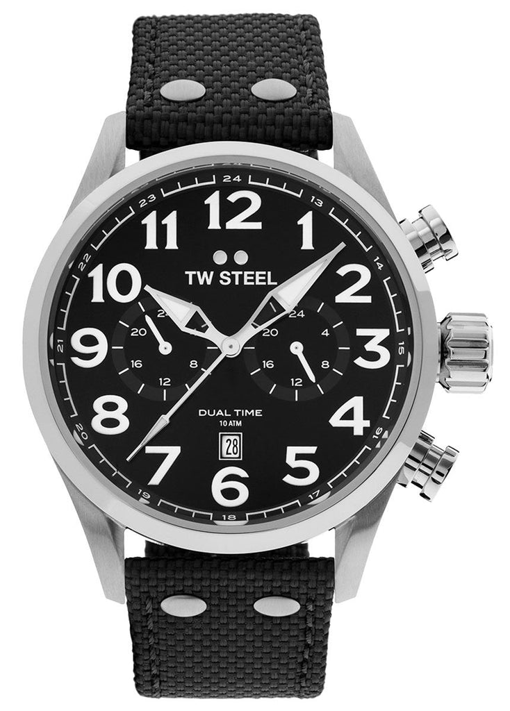 TW Steel Volante Dual Time Stainless Steel Black Textile Strap Black Dial Quartz Date Mens Watch VS7