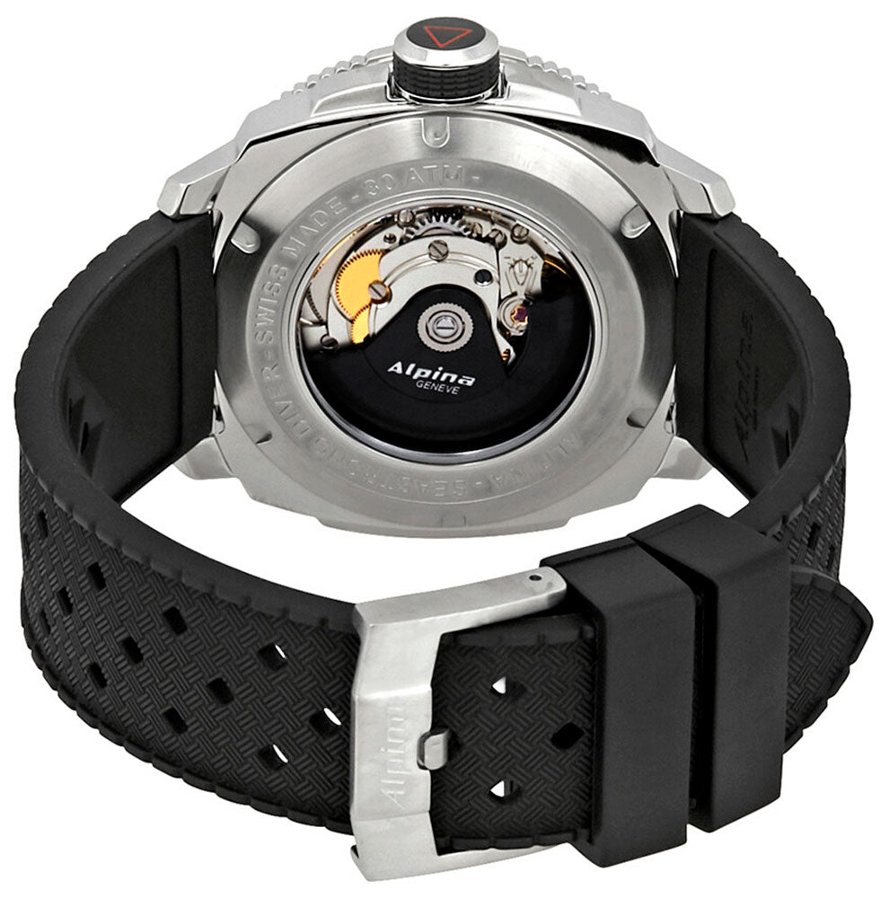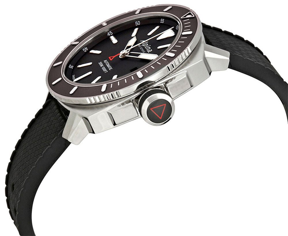 Alpina Seastrong Diver 300 Automatic Stainless Steel Black Rubber Strap Black Dial Date Mens Watch AL-525LBG4V6