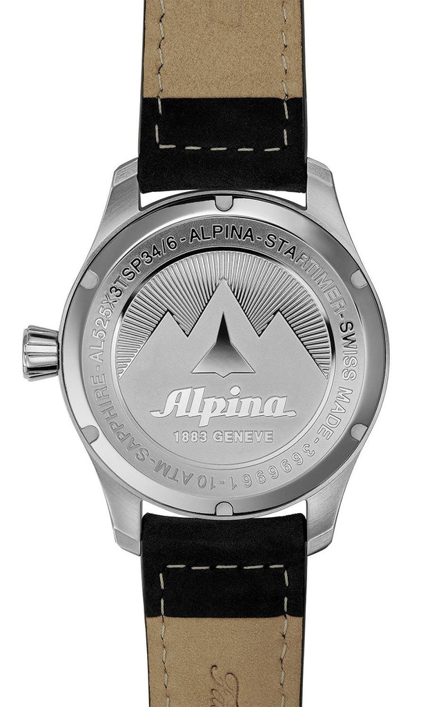 Alpina Startimer Pilot Automatic Stainless Steel Black Leather Strap Blue Dial Date Mens Watch Model# AL-525NN4S6 / AL 525NN4S6 / AL525NN4S6. This Swiss watch features a stainless steel case, a blue dial set with silver-tone and luminous hand indicators & silver-tone and luminous Arabic numerals hour markers, a date display window at the 3 o'clock position, Black leather strap with off-white stitching, Buckle clasp, Anti-Reflective Scratch-resistant sapphire crystal, Screw down crown, Swiss Automatic Movement, Water-resistant to 100 meters/330 feet.Like all of our watches, this Alpina Startimer Pilot Automatic Stainless Steel Black Leather Strap Blue Dial Date Mens Watch is brand new and comes in its original packaging.