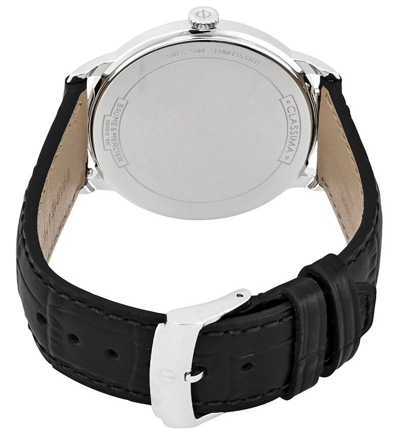 Baume & Mercier Classima Stainless Steel White Dial Black Leather Strap Date Quartz Mens Watch M0A10323