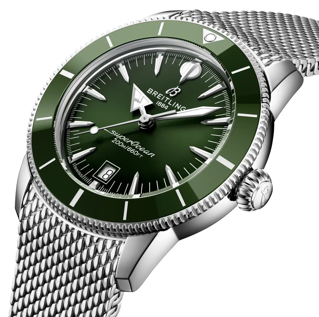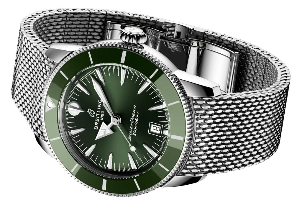Breitling Superocean Heritage B31 Automatic Stainless Steel Mesh Green Dial Date Divers Mens Watch AB3111361L1A1