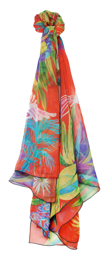 Chopard Animal World Coral/Turquoise Organic Silk Chiffon Womens Stole/Scarf 95005-0473 Animal World Coral Organic Silk Chiffon Womens Stole/ScarfScarf
