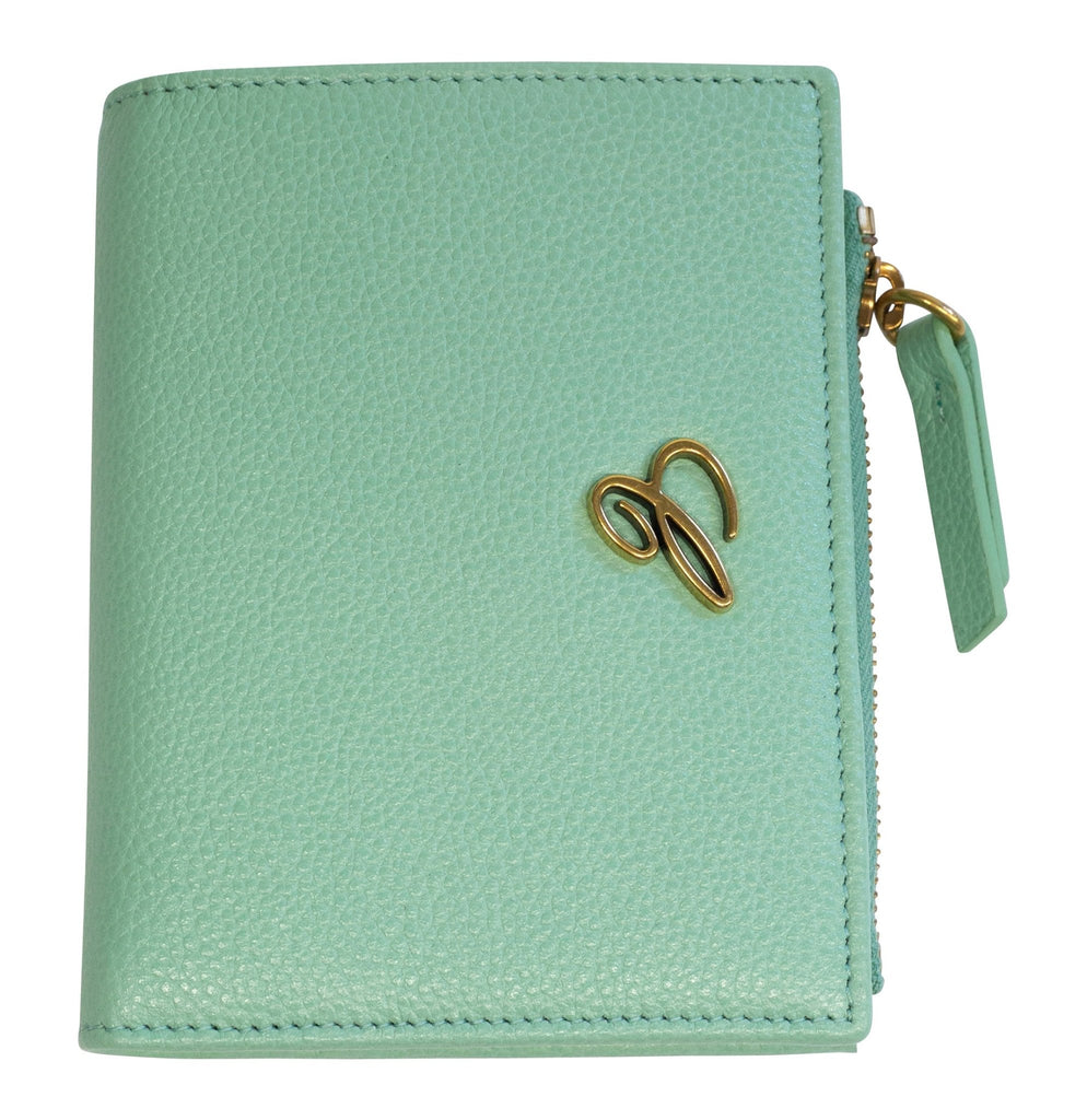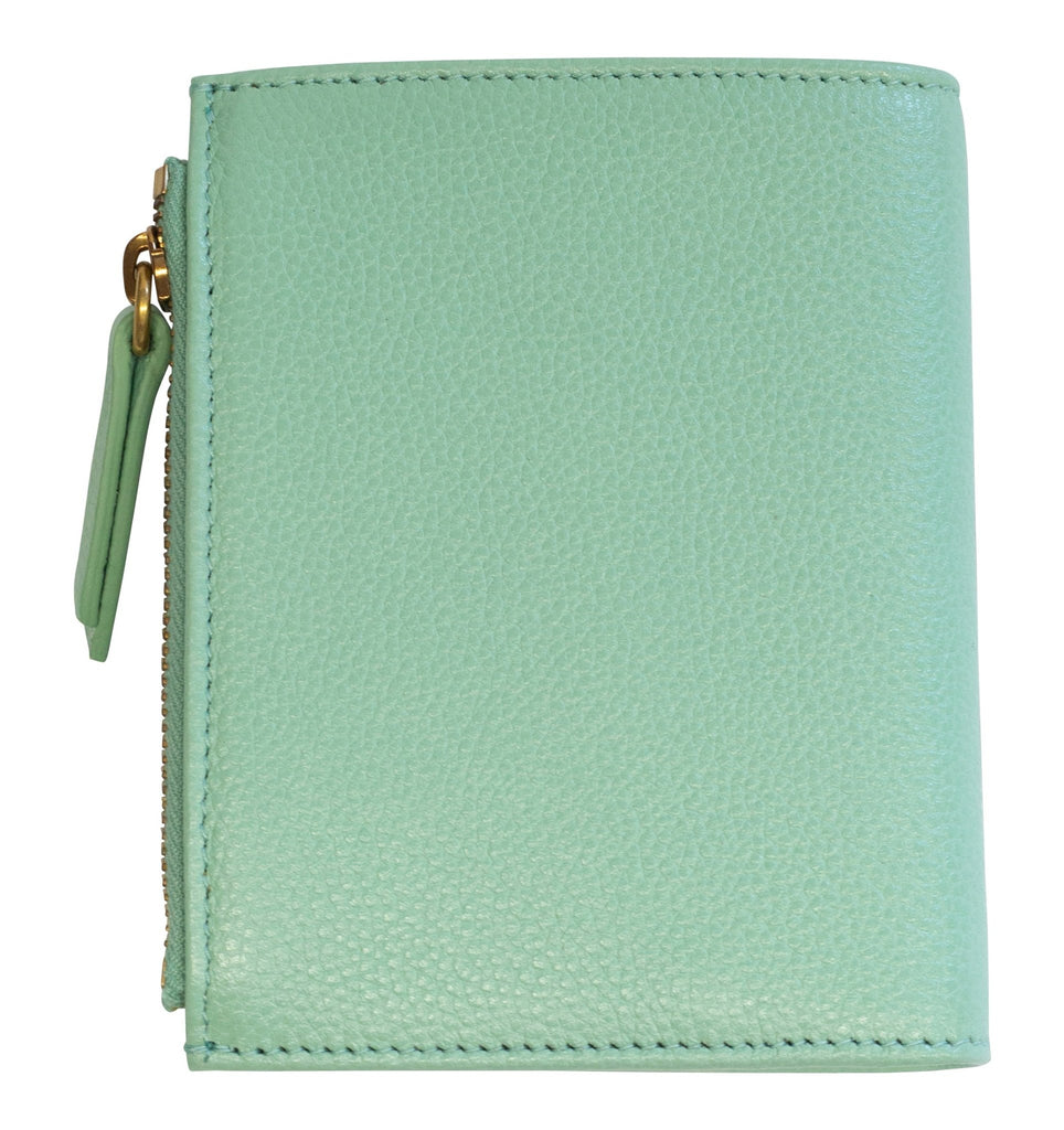 Womens medium wallet from Chopard. It is made of mint green calfskin leather with compartmentsfor bills, cards and coins