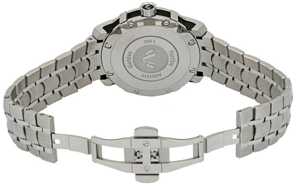This Dewitt Glorious Knight Automatic Stainless Steel Men's Watch Model # FTV.PTS.001.S is sure to impress with its elegant, modern and charming design! Elegance and modesty are the defining characteristics of this superb watch which can be worn to suit any occasion. This Swiss watch is Presented in a luxurious brushed & polished stainless steel case and bracelet with a push button deployment clasp, a handsome black sunray design dial, Line pattern on lower part of the dial in burgundy and silvered appliques. silver tone skeleton hand indicators, Silver tone Roman Numeral hour markers and white Arabic Numeral hour markers, Black Seconds sub-dial, Superior Anti-reflective Scratch Resistant Sapphire Crystal protects the dial, Solid Case back with 8 screws and DeWitt logo with "Clou de Paris" pattern, Automatic mechanical self-winding movement, 21 Jewels, 42 hour power reserve, 28,800 Vh, 3-Armed Glucydur Balance, Water resistant to 3 ATM/30 meters/100 feet.As all of our watches, this Dewitt Glorious Knight Gents watch is BRAND NEW, and comes in its original packaging!