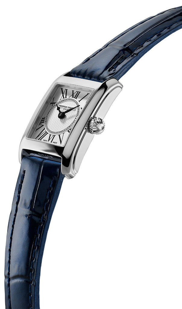 Frederique Constant Classics Carree Stainless Steel Rectangle Case Blue Leather Strap Silver Dial Quartz Womens Watch FC-200MC16 Classics Carree Steel Rectangle Blue Leather Womens WatchWatches - Womens