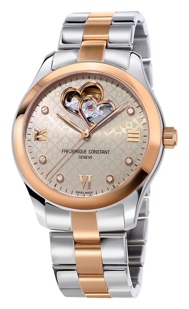 Frederique Constant Double Heart Beat Two Tone Stainless Steel Automatic Diamonds Gray Dial Womens Watch FC-310LGDHB3B2B