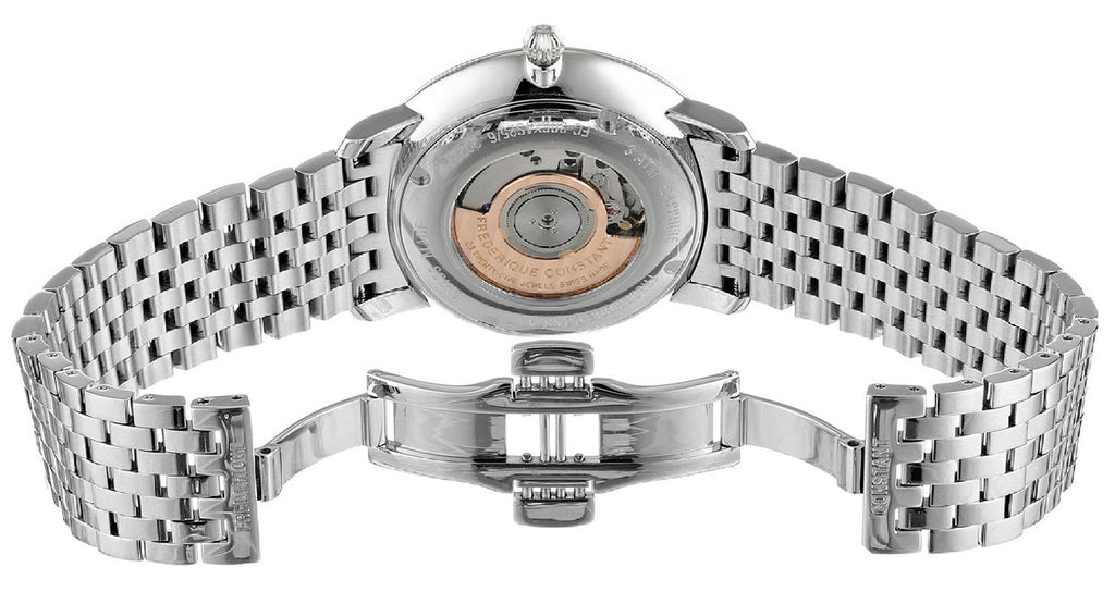 Frederique Constant Slimline Automatic stainless steel mens Swiss luxury watch Model# FC-306S4S6B , 306S4S6B , FC306S4S6B. This Swiss watch features a polished stainless steel case and bracelet, Silver dial, silver tone hand indicators, silver tone index hour markers, Date display at the 3 o'clock position, Convex sapphire crystal, Onion shaped push/pull crown, Transparent case back, Swiss Automatic Movement, Caliber FC-306, 25 Jewels, 28'800 alt/h, 42 hour power reserve, Water-resistant to 30 meters/100 feet.As all of our other watches, this Frederique Constant Slimline Automatic watch is BRAND NEW and comes with the original box, warranty card and papers!