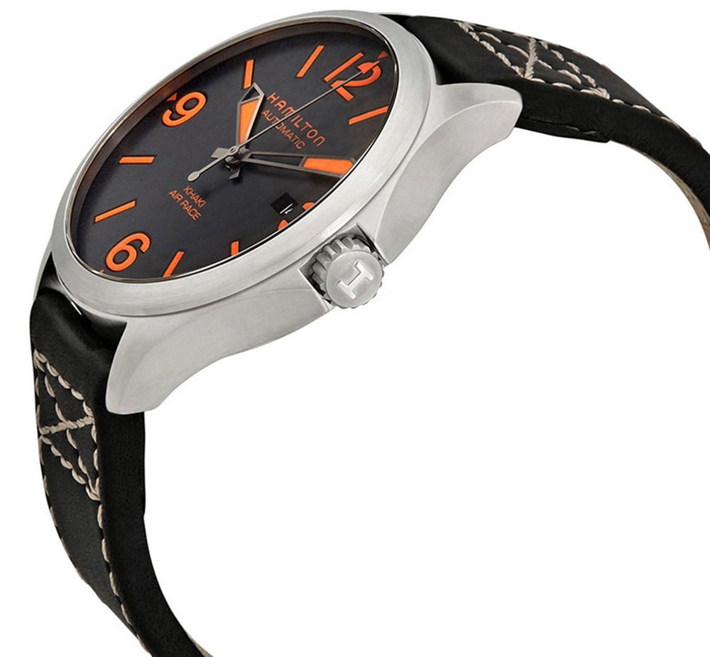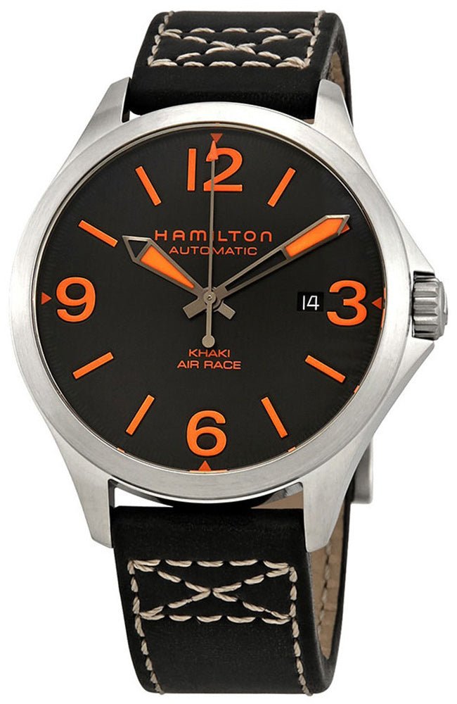 Hamilton Khaki Aviation Air Race Automatic Black and Orange Dial Date Black Leather Men’s Strap Watch H76535731