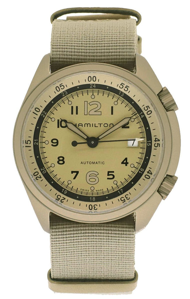 Hamilton Khaki Aviation Pilot Pioneer Automatic Aluminum Beige Canvas Strap Men’s Watch Date H80435895 Khaki Aviation Pilot Pioneer Automatic Aluminum Canvas Mens Watch