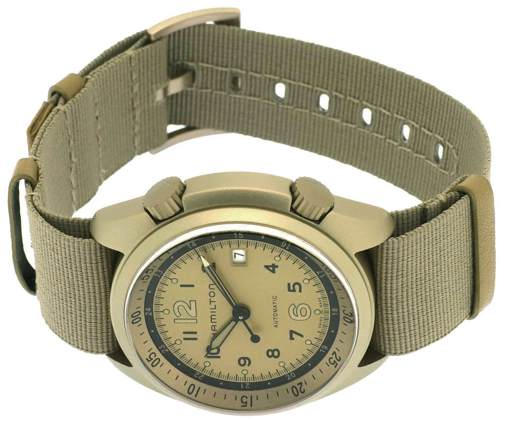 Hamilton Khaki Aviation Pilot Pioneer Automatic Aluminum Beige Canvas Strap Men’s Watch Date H80435895