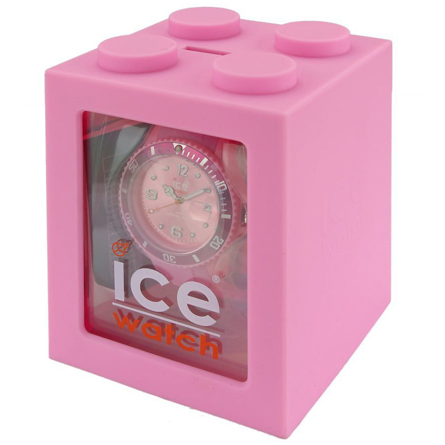 Packaged in a plastic Ice-Watch box that doubles as a coin bank.