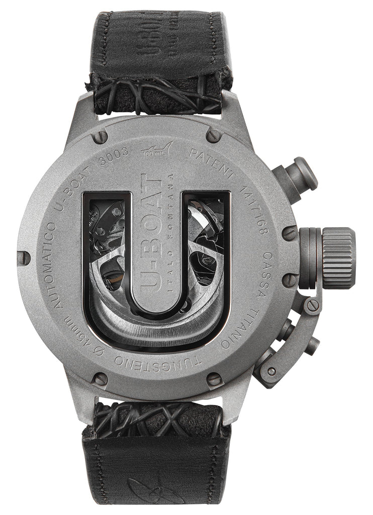 U-Boat Classico 45 Limited Edition Automatic Chronograph Titanium & Tungsten Blue Dial Black Leather Strap Date Mens Watch Model# 3003