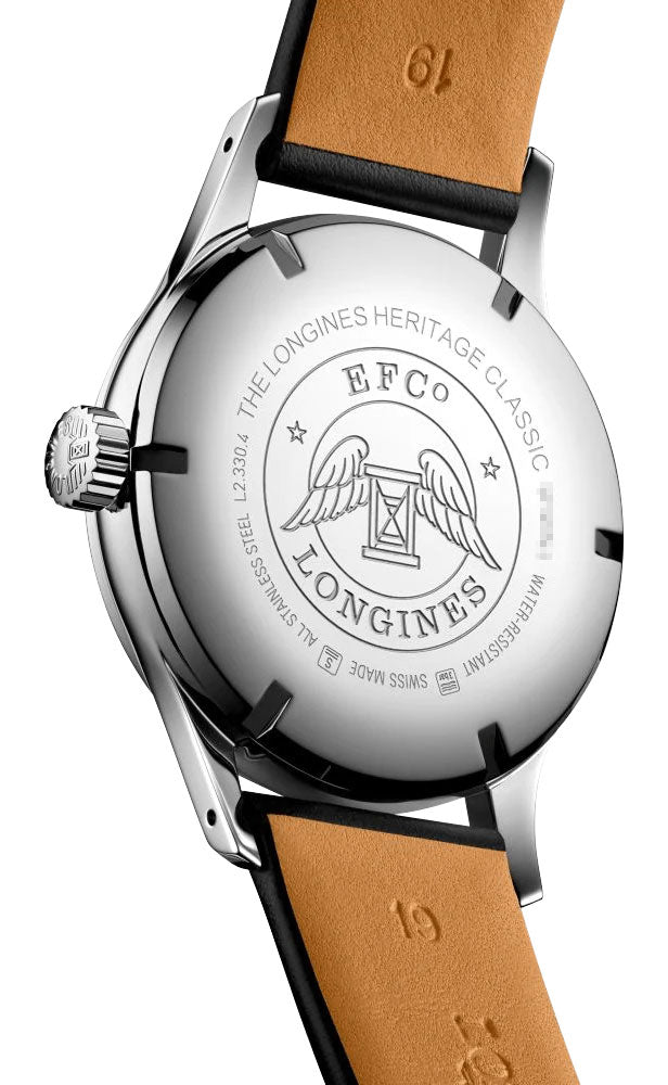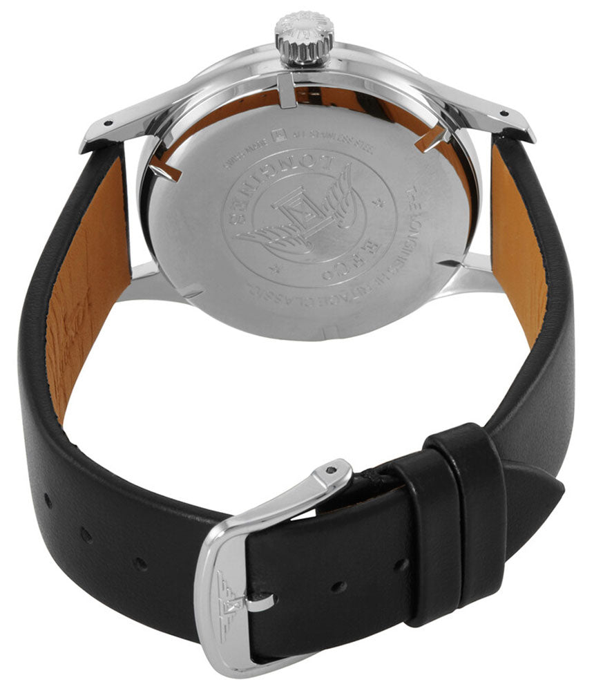 Like all of our watches, this Longines Heritage Classic Tuxedo Automatic Stainless Steel Silver-Tone Dial Black Leather Strap Mens Watch is brand new and comes in its original packaging.