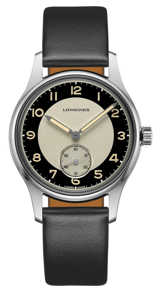Longines Heritage Classic Tuxedo Automatic Black & Silver Dial Black Leather Strap Mens Watch L2.330.4.93.0