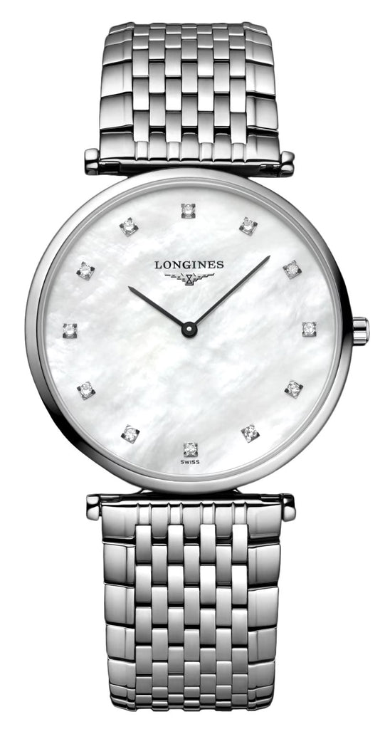 Like all of our watches, this Longines La Grande Classique Stainless Steel Mother-Of-Pearl Dial Diamonds Quartz Womens Watch is brand new and comes in its original packaging.