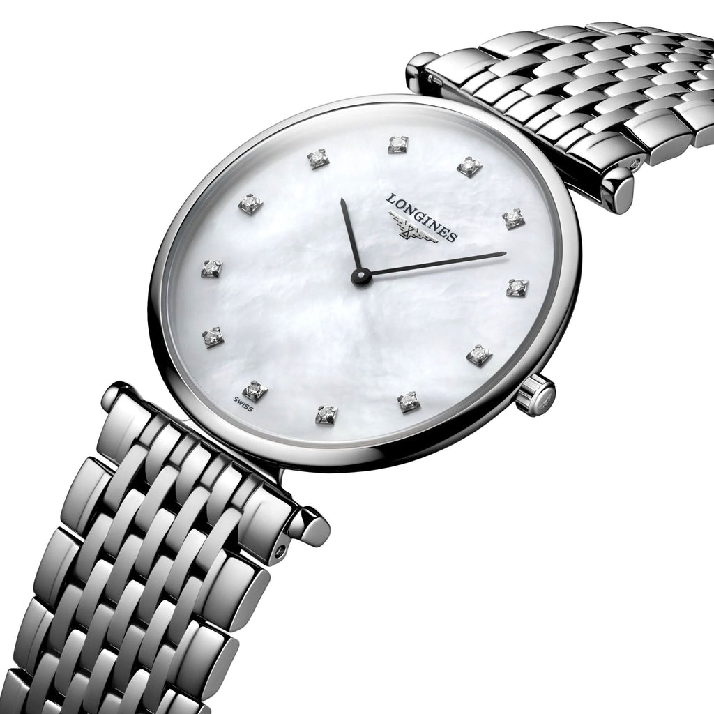 Longines La Grande Classique Stainless Steel Mother-Of-Pearl Dial Diamonds Quartz Womens Watch L4.709.4.88.6