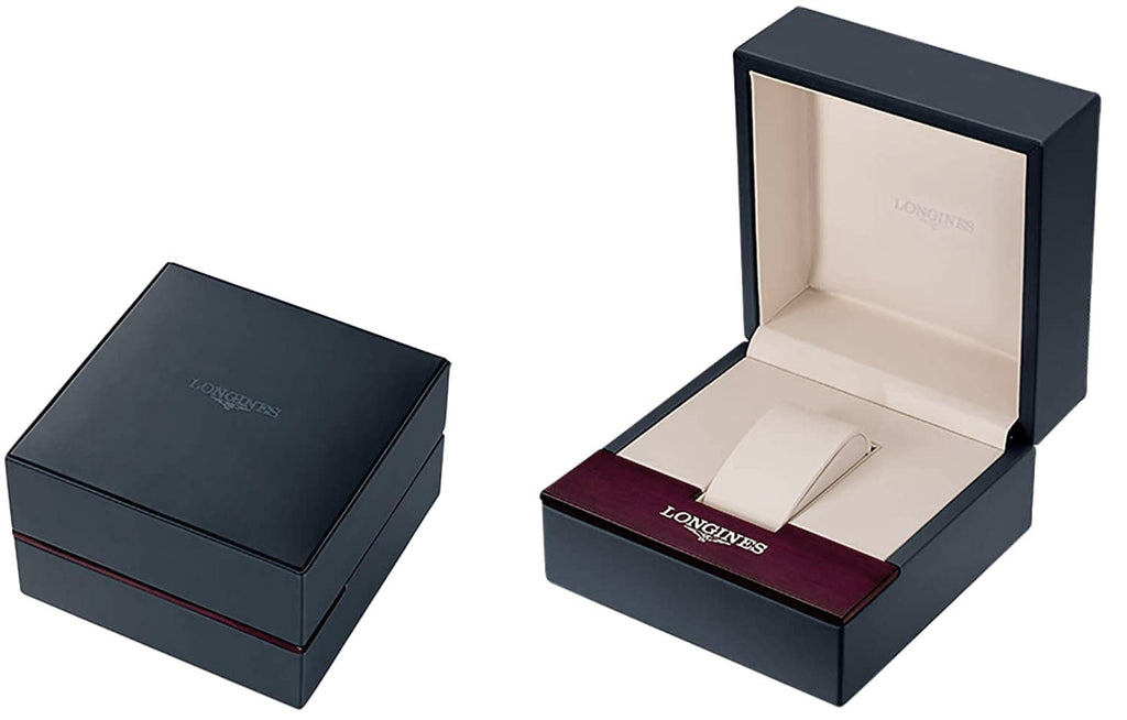 Longines Lyre Yellow Gold PVD Gold-Tone Dial Black Leather Strap Date Quartz Mens Watch Model# L4.859.2.32.2 / L48592322 features a 38.5 mm yellow gold PVD case that holds the champagne / gold-tone dial. The dial has yellow gold-tone hand indicators and index hour markers. Date display window at the 3 o'clock position. Scratch-resistant sapphire crystal and a solid case back. Black calf leather strap with a buckle. This watch runs on a Swiss Quartz movement and is water-resistant up to 30 meters/100 feet.Like all of our watches, this Longines Lyre Yellow Gold PVD Gold-Tone Dial Black Leather Strap Date Quartz Mens Watch is Brand New and comes in its original packaging.