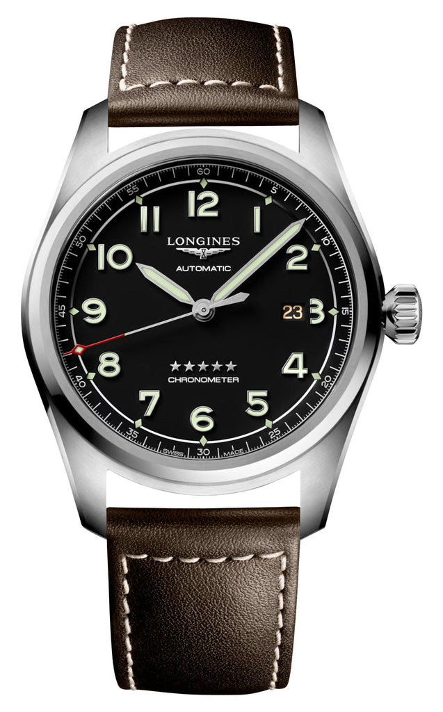 Like all of our watches, this Longines Spirit Automatic COSC Stainless Steel Black Dial Brown Leather Strap Date Mens Watch is brand new and comes in its original packaging.