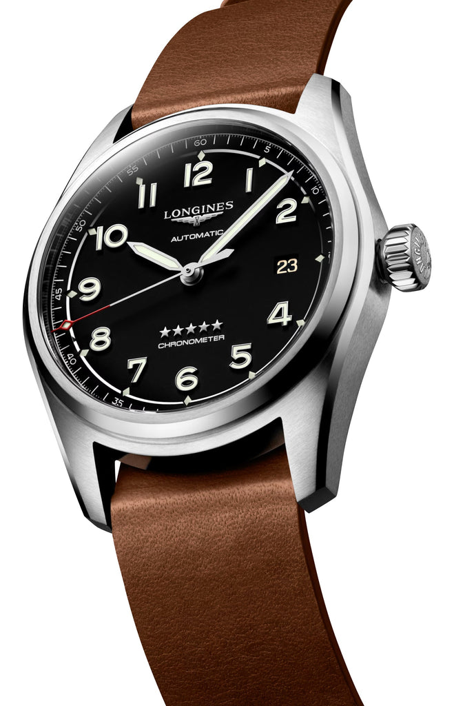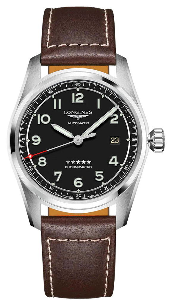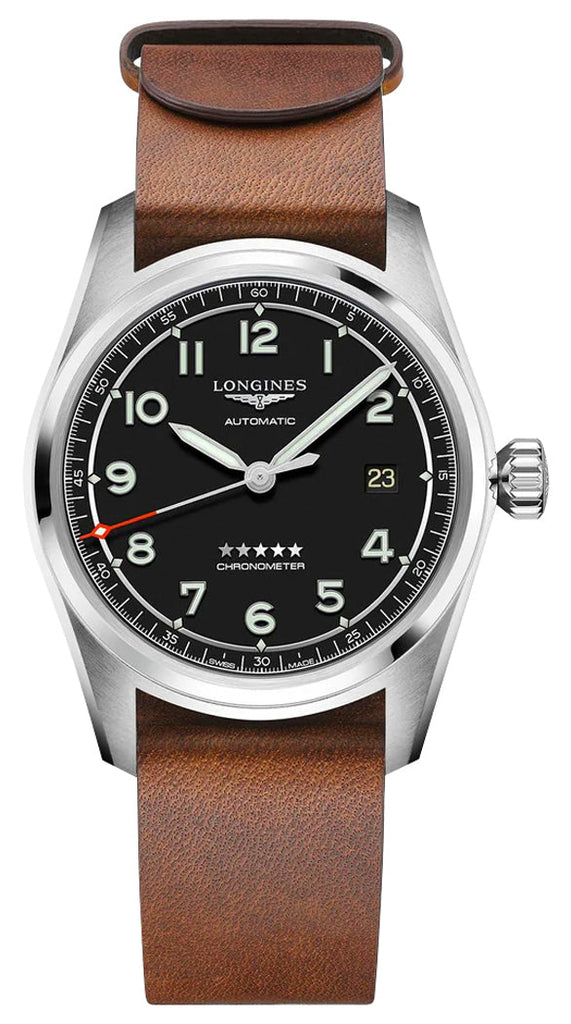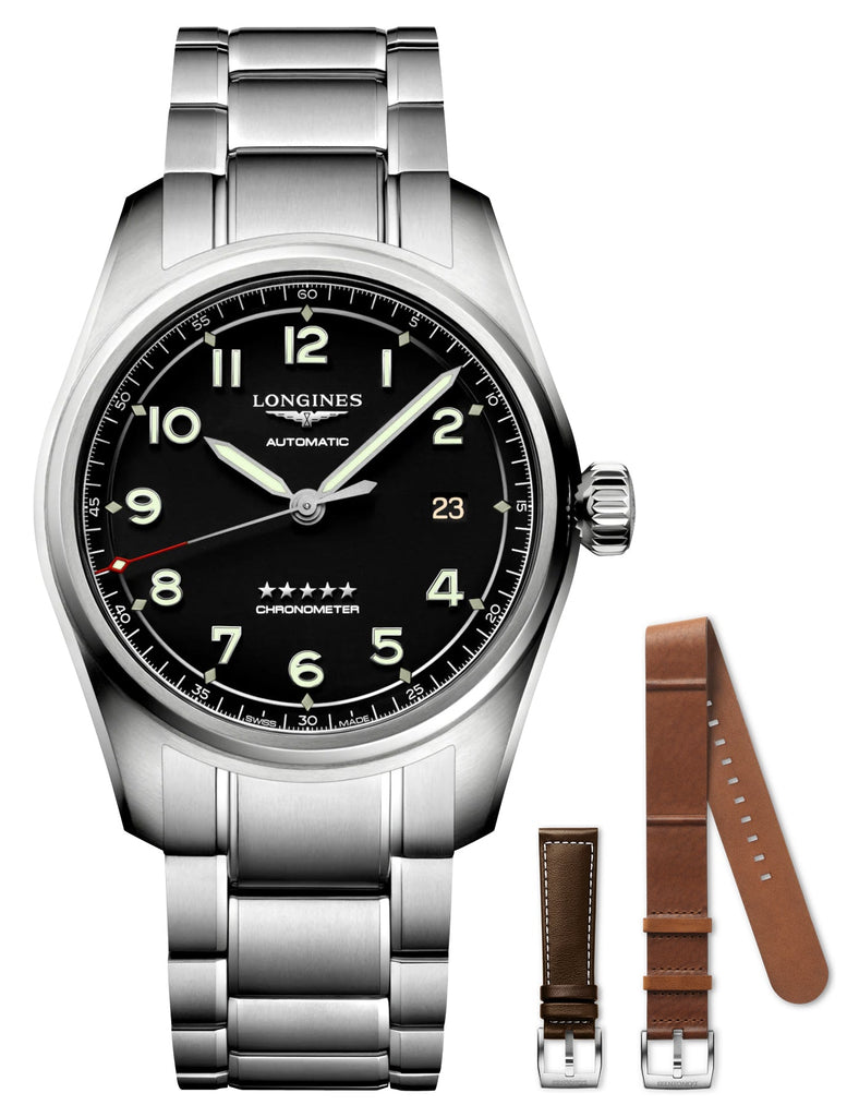 Longines Spirit Prestige Edition Automatic COSC Stainless Steel Black Dial Interchangeable Brown Leather/NATO Strap Date Mens Watch L3.810.4.53.9