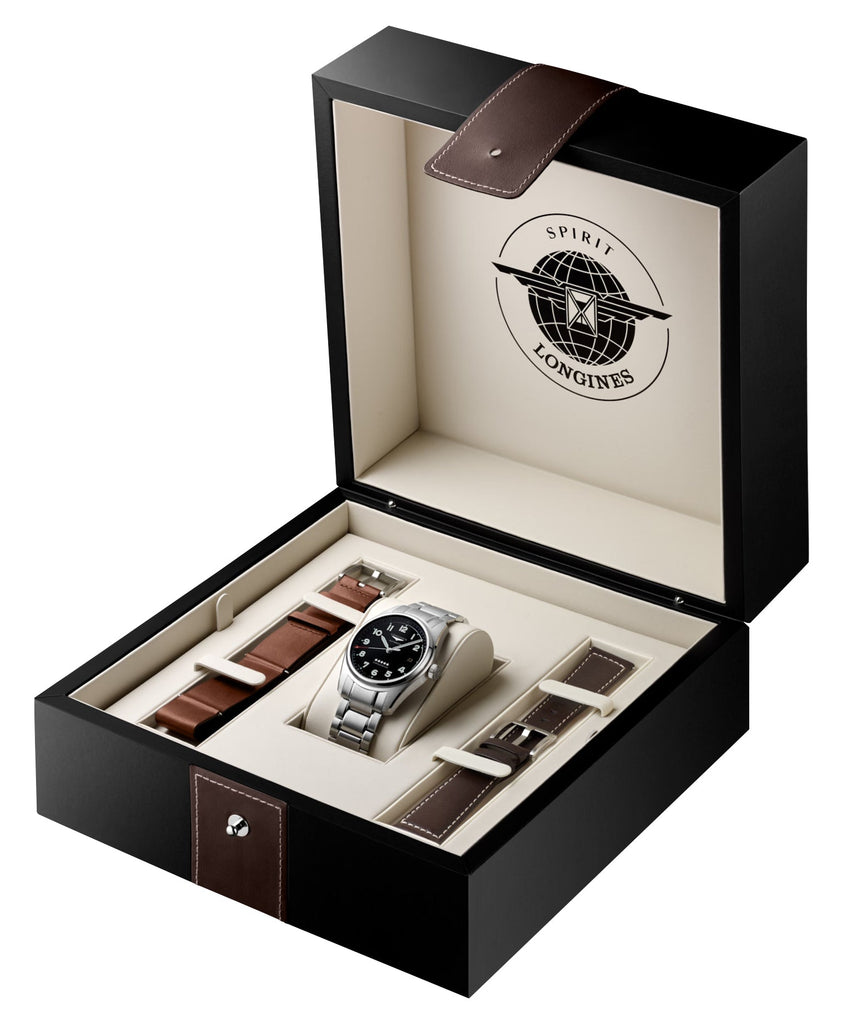 Like all of our watches, this Longines Spirit Prestige Edition Automatic COSC Stainless Steel Black Dial Interchangeable Brown Leather/NATO Strap Date Mens Watch is brand new and comes in its original packaging.