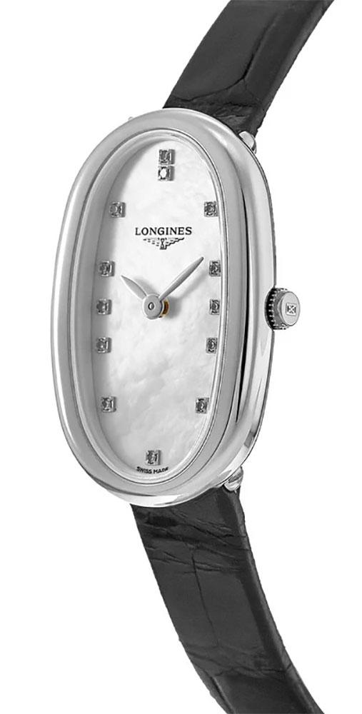 Longines Symphonette Black Leather Strap Stainless Steel Mother-Of-Pearl Dial Diamonds Womens Watch L2.305.4.87.0