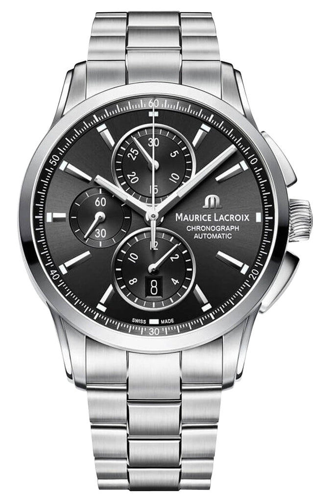 Maurice Lacroix Pontos Automatic Chronograph Stainless Steel Black Dial Date Mens Watch PT6388-SS002-330-1