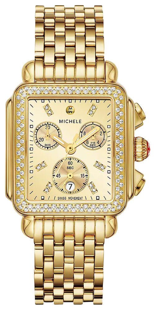 Michele Deco Diamond High Shine Chronograph Date 18K Gold-Plated Stainless Steel Womens Watch MWW06A000806