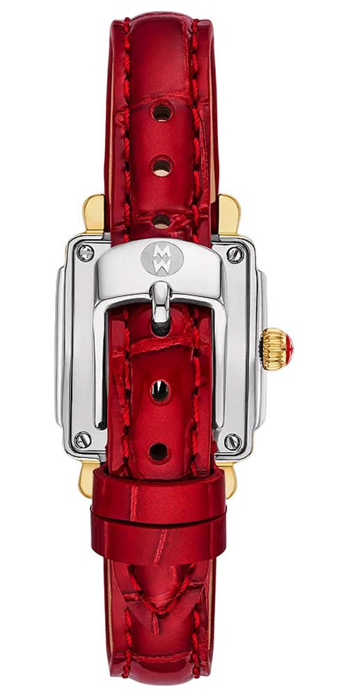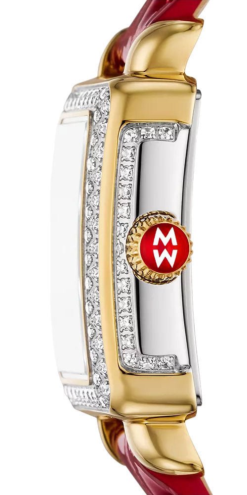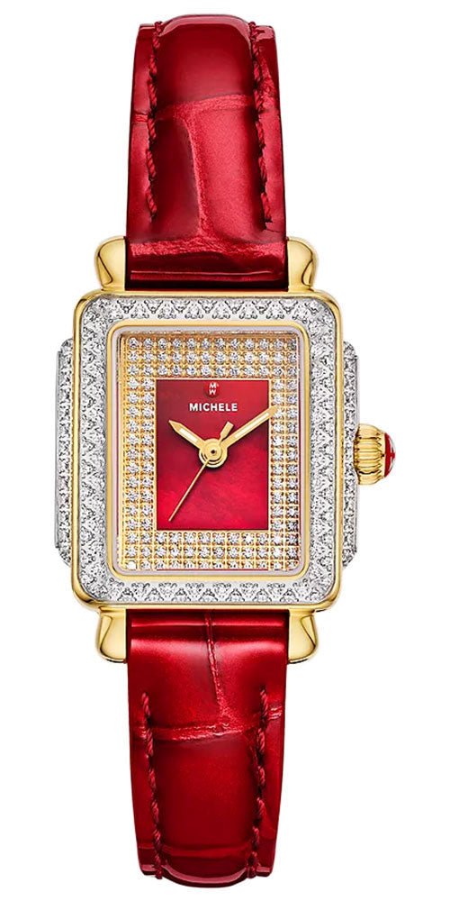 Michele Special Edition Deco Madison Mini Red Mother-of-Pearl Dial Diamonds Red Leather Strap Women's Watch MWW06D000170