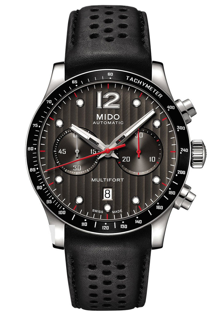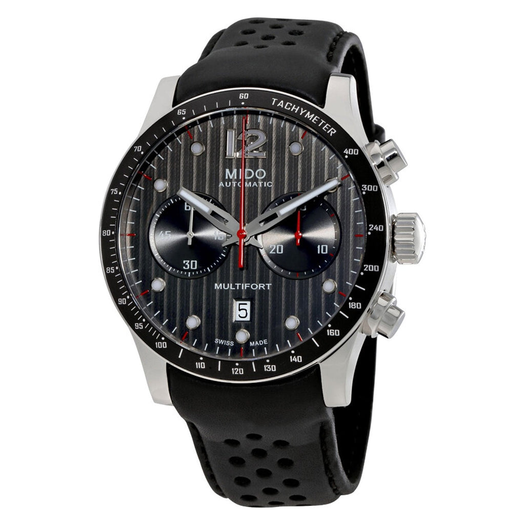 Mido Multifort Automatic Chronograph Black Leather Strap Black Dial Date Mens Watch M025.627.16.061.00