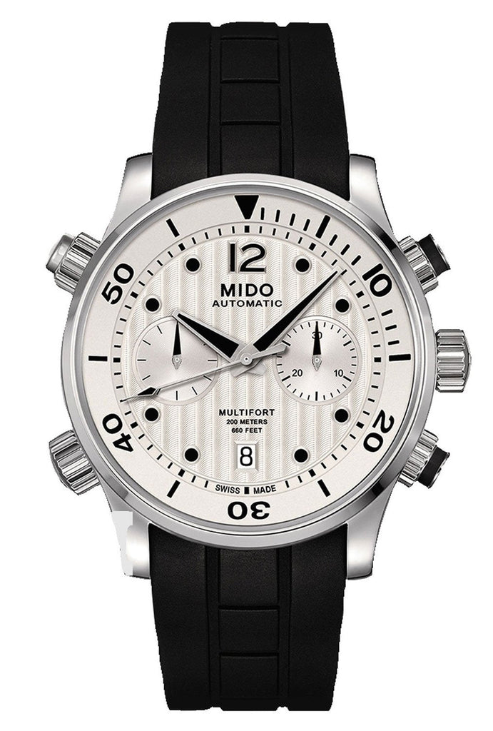Mido Multifort Automatic Chronograph Black Rubber Strap Silver Dial Date Diver's Mens Watch M005.914.17.030.00 Multifort Automatic Chrono Black Rubber Date Diver's Mens WatchWatches - Mens