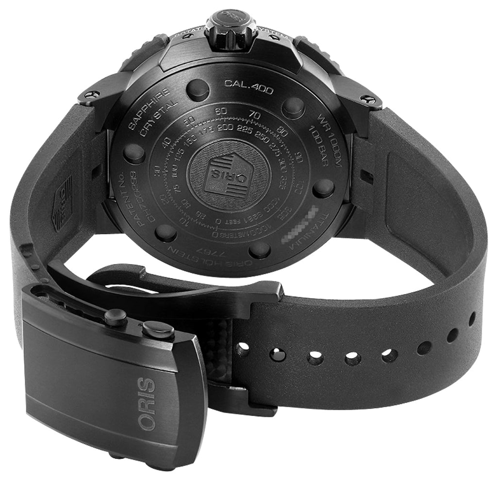Oris AquisPro Date Calibre 400 Automatic Black DLC Titanium Black Dial Black Rubber Strap Divers Mens Watch Model# 400 7767 7754-RS / 01 400 7767 7754-07 426 64BTEB