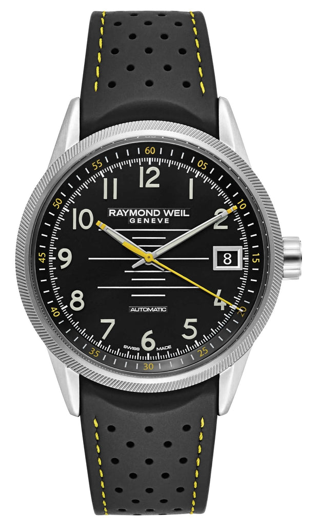 Like all of our watches, this Raymond Weil Freelancer Automatic Stainless Steel Black Dial Black Rubber Strap Date Mens Watch is brand new and comes in its original packaging.