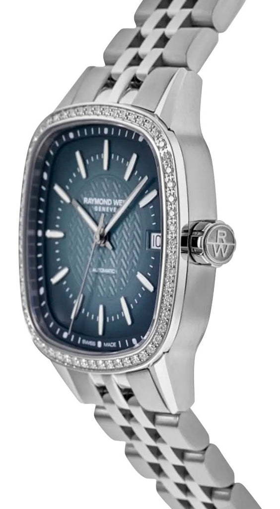 Raymond Weil Freelancer Automatic Stainless Steel Blue Dial Date Diamonds Womens Watch 2490-STS-50051