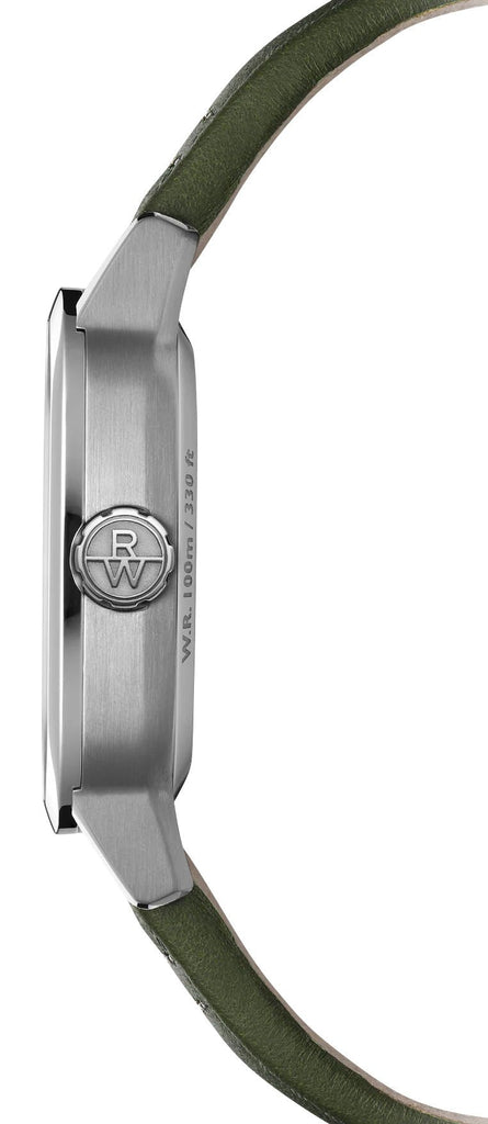 Created in honor of the free-spirited man combining classic and modest to create a harmonious and unique design. A new interpretation of the form watch that elegantly transcends convention, this gents' Freelancer is the next evolution of its automatic collection. It features a 40 x 40 mm stainless steel cushion-shaped square case with a fixed bezel and screw-down crown. It holds a mesmerizing gradient green dial under a scratch-resistant sapphire crystal, its lighter colored center gradually turning to an almost black outer section. It has silver-tone and luminescent barrel hands and applied indices as hour markers, which are laid out along the recessed inner railway minute track. Situated at the 6 o'clock position is the open heart aperture, revealing the balance-and-spring assembly and held by a single skeletonized bridge. It is fitted with a matching green leather strap and secured by a folding clasp with a double push-security system. This watch has an exhibition caseback showcasing the caliber RW1212, a Swiss automatic movement beating at 28,800 vibrations per hour, generating up to 41 hours of power reserve and is water-resistant up to 100 meters/330 feet.