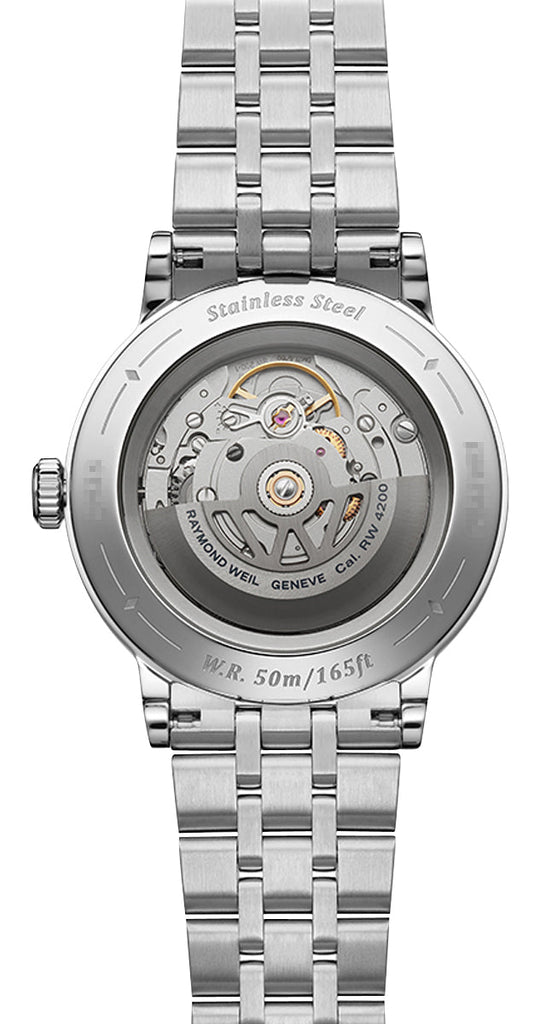 Like all of our watches, this Raymond Weil Millesime Automatic Stainless Steel Cream Dial Diamonds Womens Watch is brand new and comes in its original packaging.