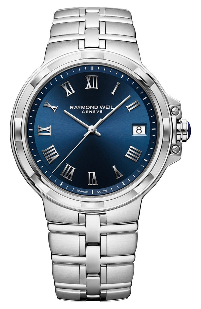 Like all of our watches, this Raymond Weil Parsifal Stainless Steel Blue Dial Date Quartz Mens Watch is brand new and comes in its original packaging.