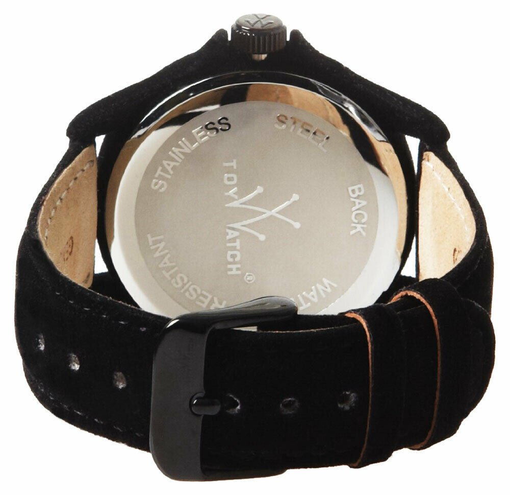ToyWatch Sartorial Black Velvet Touch Womens watch Model# PE01BK. The watch case is crafted from steel covered in velvet black and is presented on the black velvet touch leather strap, Black dial, silver tone hand indicators & hour markers, Scratch Resistant Mineral Crystal, Steel crown with toywatch logo, Steel case back, Quartz movement, Water resistant to 30 meters/100 feet. Two Year Limited Warranty.Shipping Information