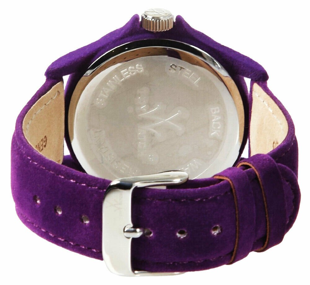 ToyWatch Sartorial Purple Velvet Touch Womens watch Model# PE06VL. The watch case is crafted from steel covered in velvet purple and is presented on the purple velvet touch leather strap, purple dial, silver tone hand indicators & hour markers, Scratch Resistant Mineral Crystal, Steel crown with toywatch logo, Steel case back, Quartz movement, Water resistant to 30 meters/100 feet. Two Year Limited Warranty.As all of our watches, this ToyWatch Sartorial Ladies watch is BRAND NEW, and comes in its original packaging with the warranty card and papers!